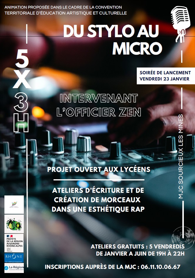 Avis aux collégiens ou lycéens du Pays de L’Arbresle : venez vivre une expérience artistique inoubliable au côté de l'Officier Zen dans une esthétique Rap !