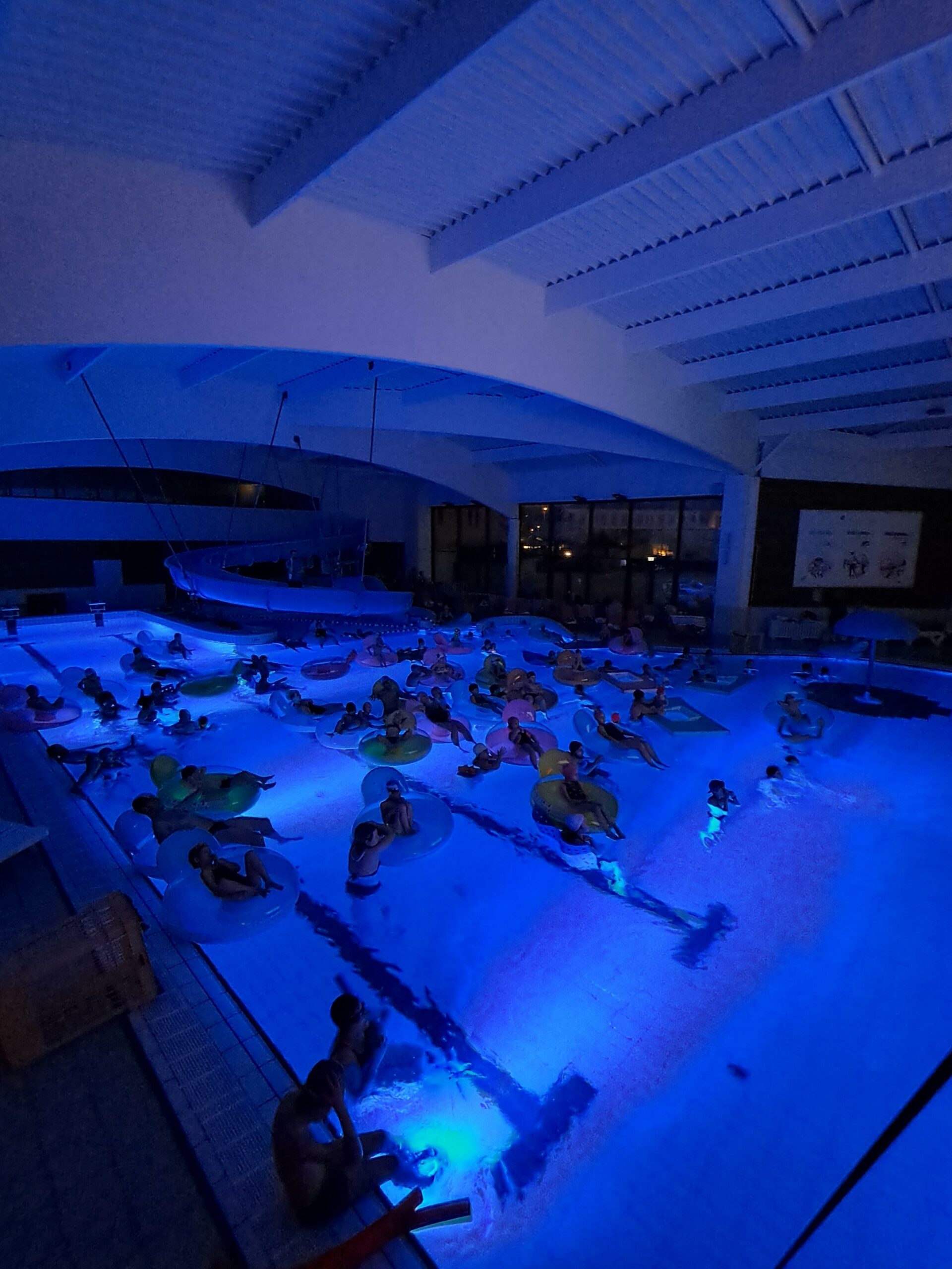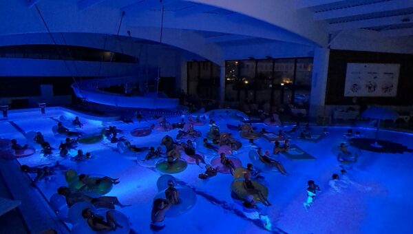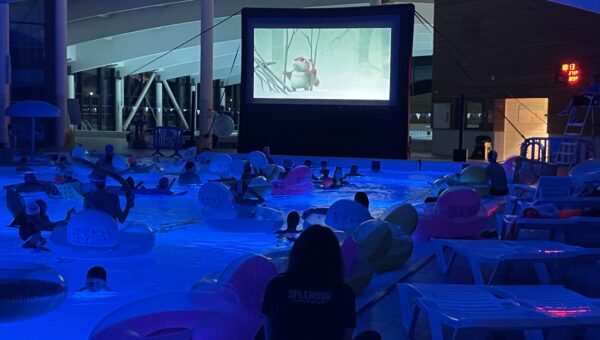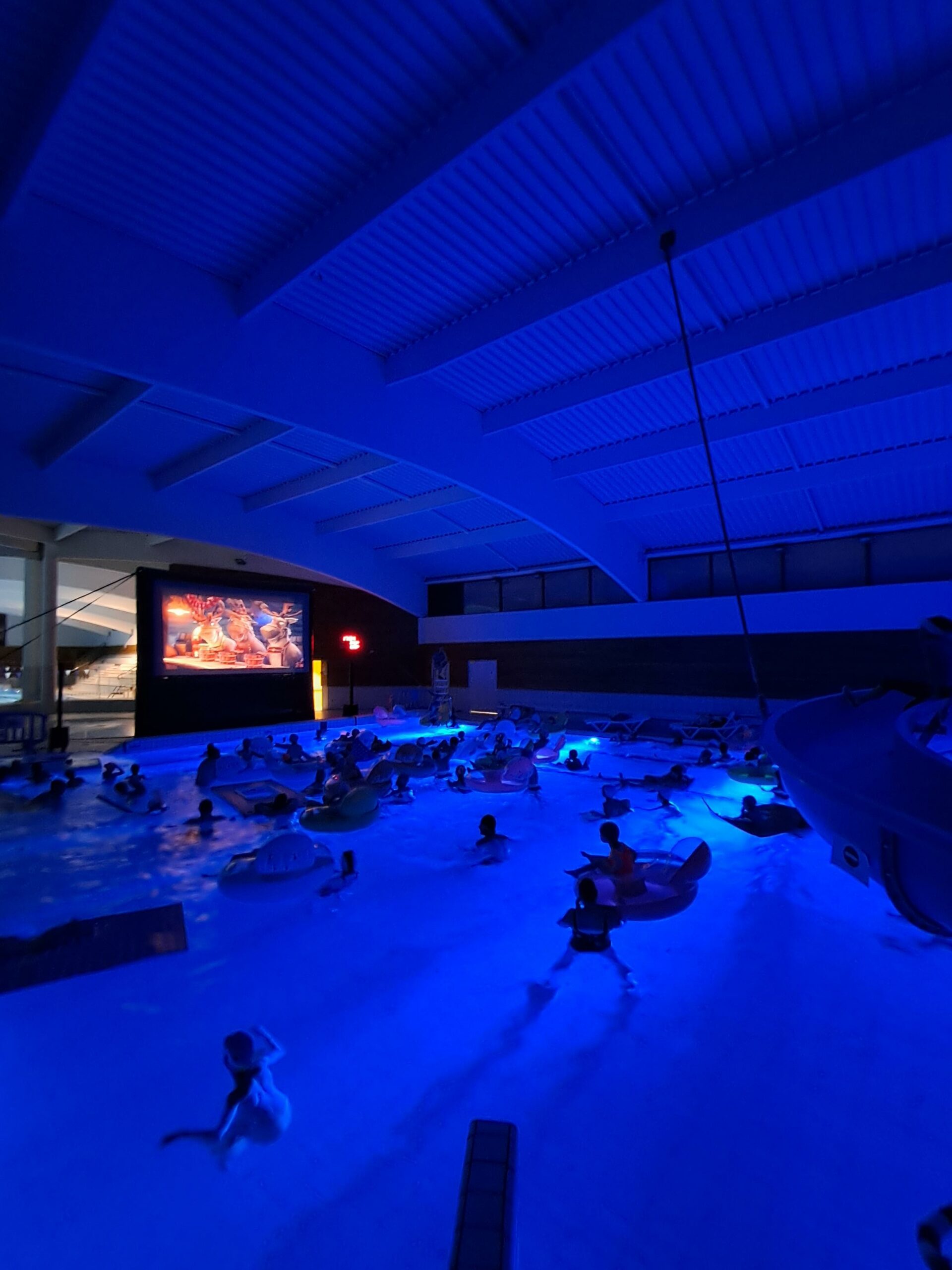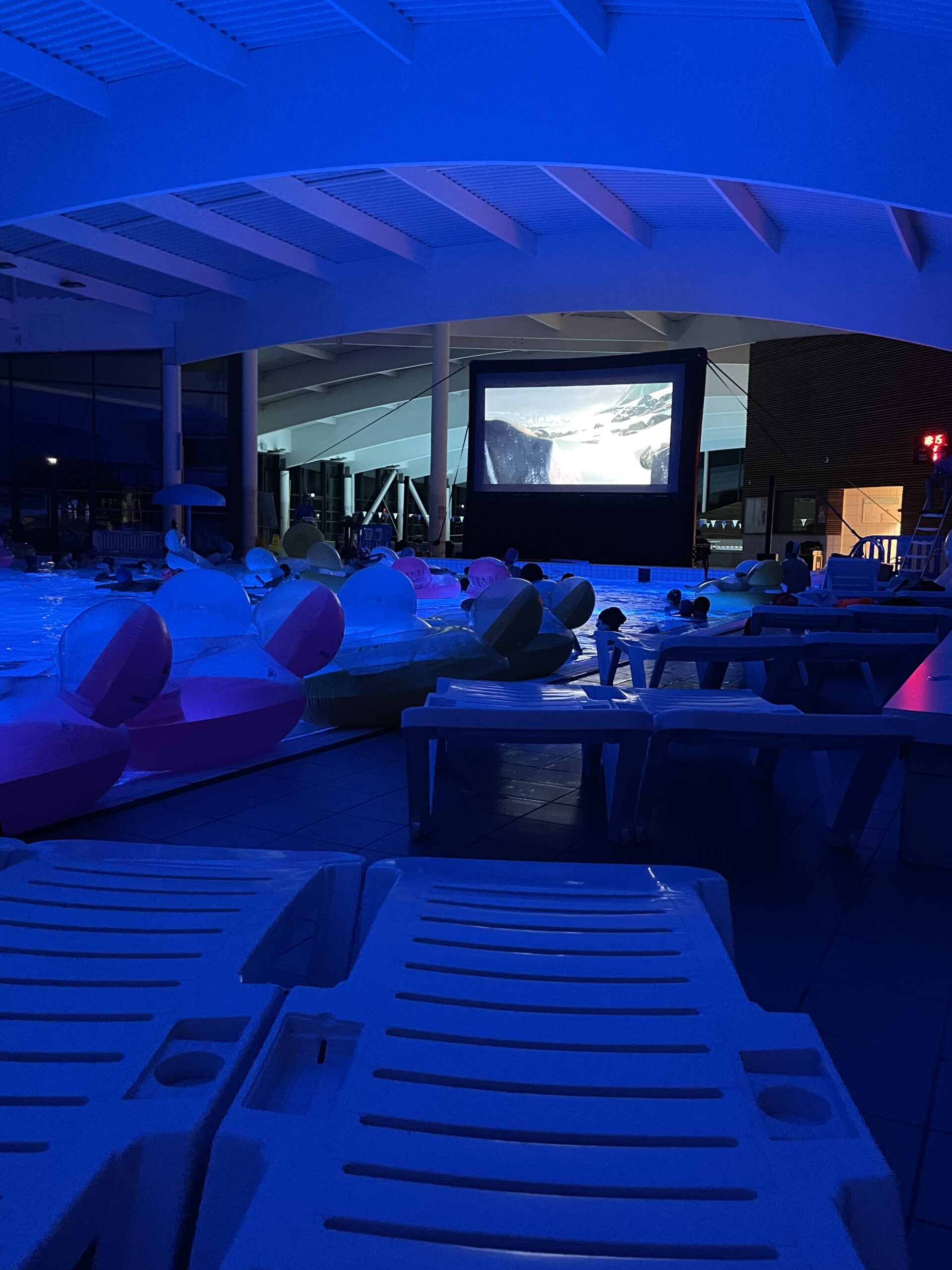 Installés dans des bouées ou immergés dans une eau chauffée à plus de 32 °C, petits et grands ont profité de la projection du film « Niko le petit renne : mission Père Noël ».
