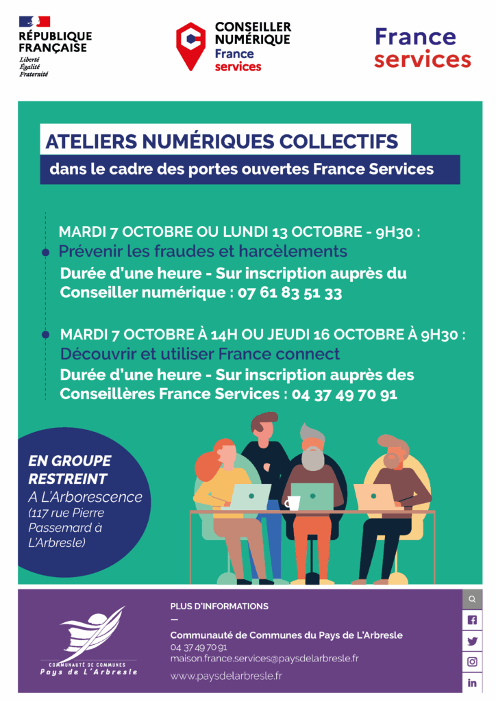 Dans le cadre des portes ouvertes France Services, la Communauté de Communes du Pays de L’Arbresle propose plusieurs ateliers numériques collectifs destinés à mieux comprendre et utiliser les outils du numérique au quotidien.