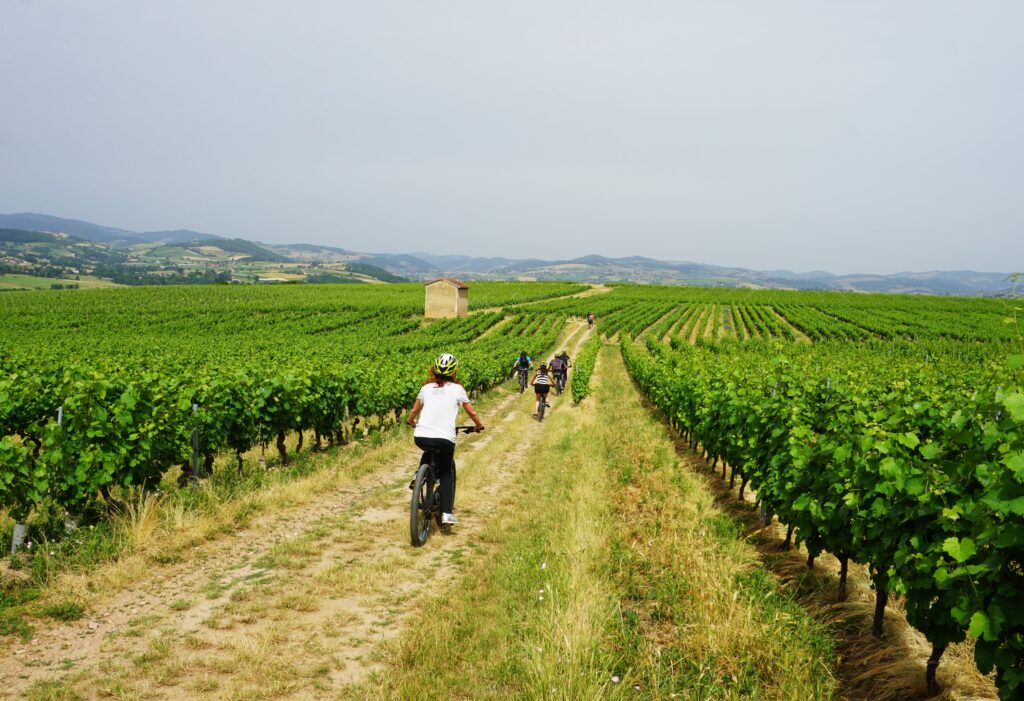 Accompagné d’un guide moniteur VTT, partez en petit groupe pour une balade en VTT électrique de 3 heures de faible dénivelé conçue spécialement pour les débutants, au cœur des vignes des pierres dorées tout autour de la commune de Bully.